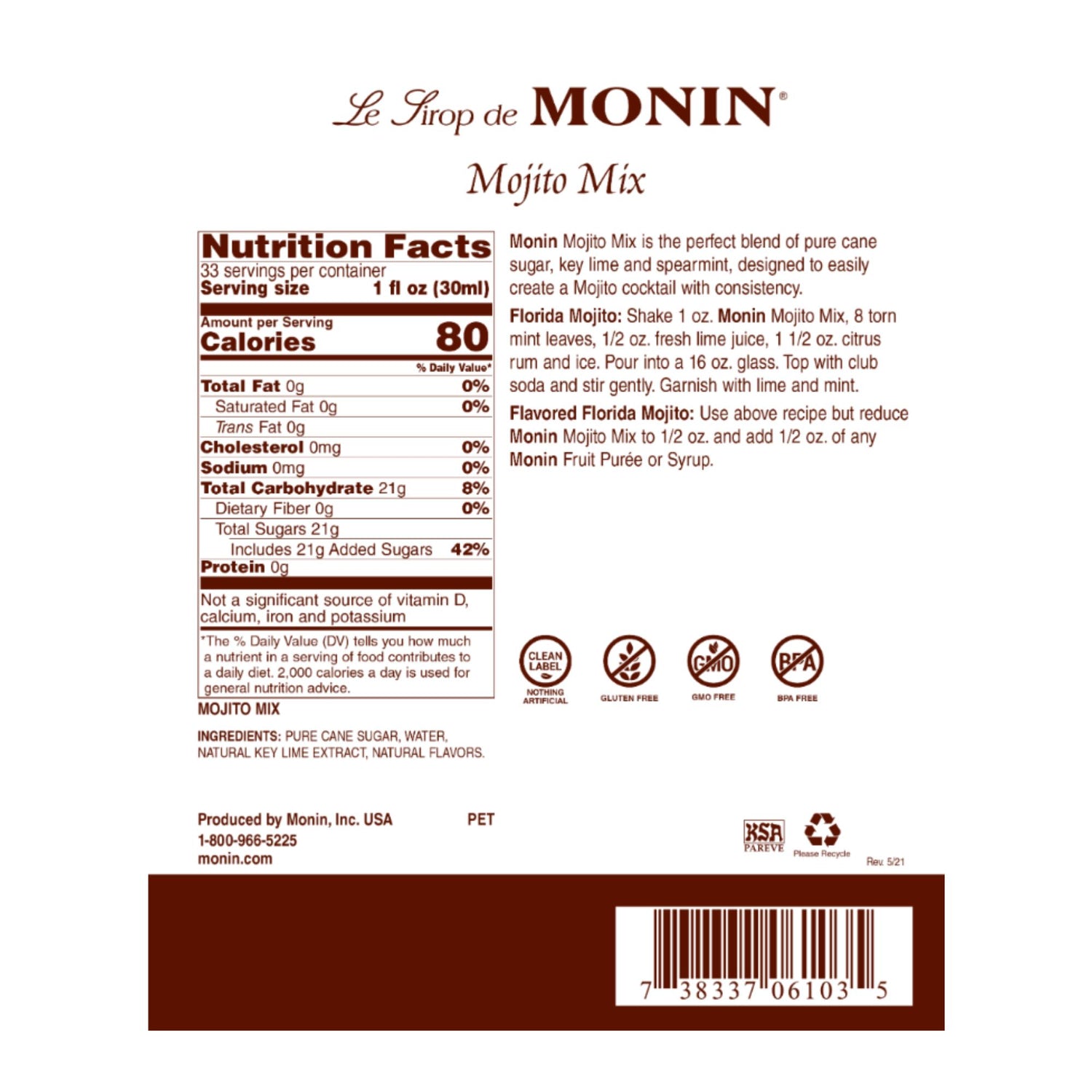 Jarabe Saborizante 750 Ml Monin Varios Sabores - MOJITO MIX está agotado y se enviará tan pronto como vuelva a estar disponible.