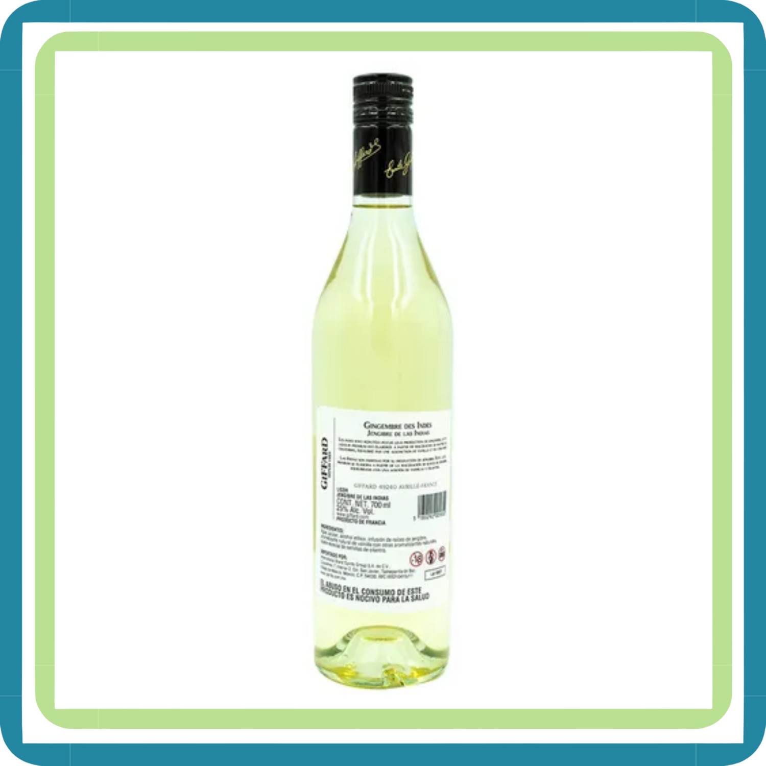 El Licor Giffard Ginger Of The Indies es un licor premium de jengibre elaborado por la casa francesa Giffard. Se caracteriza por su sabor intenso, picante y exótico gracias a una cuidadosa infusión de jengibre asiático, combinado con especias como la pimienta, la vainilla y el cilantro.