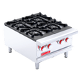 Parrilla de 4 quemadores octagonales en hierro fundido de 24,000 BTU/hr cada uno. Dos parrillas superiores en hierro fundido, 4 pilotos individuales, 2 válvulas doble de ajuste flama, 4 válvulas de gas importadas. 1 Charola de captación de escurrimientos. Incluye kit de espreas de conversión de gas GLP a GN.