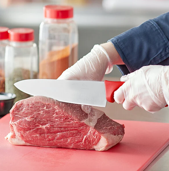 El cuchillo de chef puede picar, rebanar y cortar una amplia variedad de alimentos con poco o ningún esfuerzo, lo que garantiza que cada persona de su cocina pueda preparar fácilmente sus platos más populares. Duradero, liviano y asequible, este cuchillo es ideal para usar en cualquier cocina comercial de gran volumen, así como en escuelas culinarias y cafeterías.