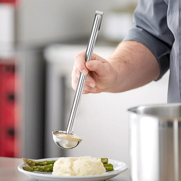 CUCHARÓN FABRICADO EN 1 PIEZA IDEAL PARA DIFERENTES PORCIONES, DESDE ADEREZOS HASTA SOPA. HAY EN DIFERENTES CAPACIDADES Y ESTÁ HECHO EN ACERO INOXIDABLE.