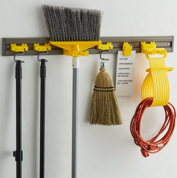 Organizador de clóset para escobas, trapeadores y trapos con capacidad de 5 colgadores.